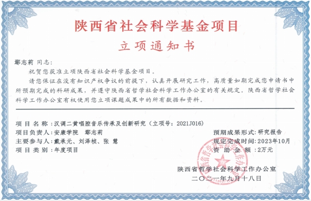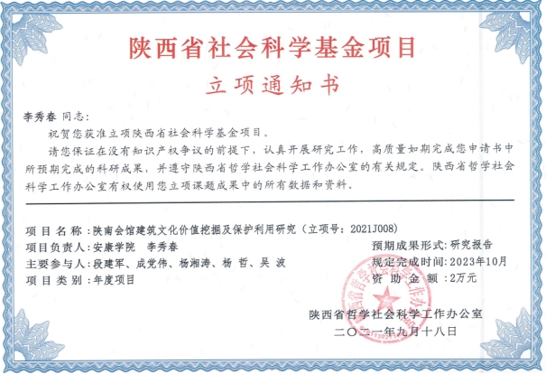 近日,陕西省哲学社会科学工作办公室公布了2021年度陕西省社科基金年度项目立项结果,jdb电子青年教师鄢志莉、李秀春申报的项目获批立项。