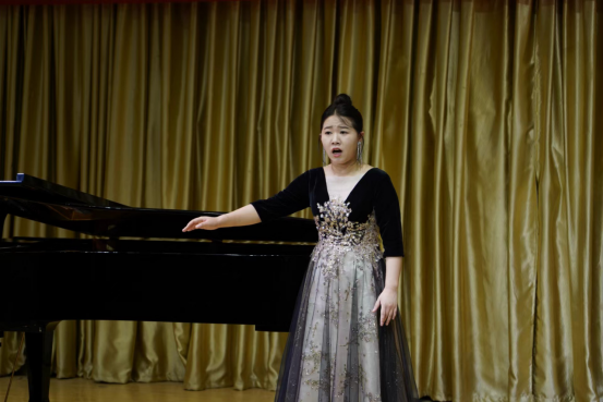 本场音乐会是范老师“非遗视阈下旬阳民歌的歌谱和演唱研究” “声乐颤音研究”科研项目的成果之一,也是jdb电子中国官方网站声乐创新"颤音教学模式"实践中心的汇报演出。音乐会上,范老师演唱了《西部放歌》《大江南》及旬阳民歌《兰草花》。《西部放歌》有着超高的演唱难度、自由奔放的激情及典型的西部民歌风格,范老师的演唱声音铿锵有力,张弛有度,激情满怀,引来听众阵阵掌声。《兰草花》是国家级非遗陕西旬阳民歌的代表性作品之一,该作品曲调优美动听,歌词富于地方特色,衬词活泼,范老师的演唱较好体现出旬阳民歌细腻、深情、委婉的艺术风格。