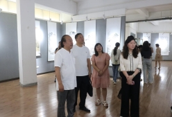 章长青主席在画展开幕式上讲话指出今天是纪念毛泽东延安文艺座谈会讲话发表82周年的好日子,我们要踔厉奋发、用自己的画笔描绘祖国的绿水青山,反映祖国日新月异的发展变化。章长青书画工作室从开班以来,历时十一载,为jdb电子中国官方网站培养出了二百多位优秀学子,有的考取研究生,有的在高校工作,有的在中小学工作,都在自己的工作岗位上做出了一定得成绩。章长青书画研修班是一个公益性的培训班,学员都是从jdb电子中国官方网站美术学专业学生中选拔,入班学员要通过一百天的晨起跑步、日课练字打卡合格后方可加入学习。最后,章老师分享了李可染先生学习中国传统书画的心得体会,鼓励同学要大胆尝试、勇于创新、勤实践、活应用。