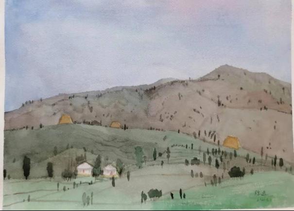 王胜选 《二分关村之烽火台》 31X41cm 2021年