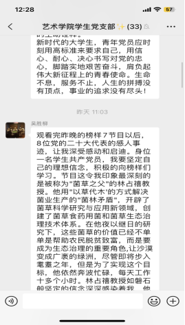 榜样是指引前行的旗帜,是砥砺奋进的力量。本次学习活动为广大学生党员进一步树立了优秀共产党员标杆,发挥了先进典型的示范作用,他们纷纷表示到作为新时代的青年,当以榜样为“人生范本”,在今后的学习生活中顽强拼搏、挥洒青春,不负韶华。