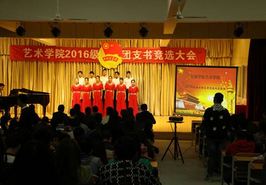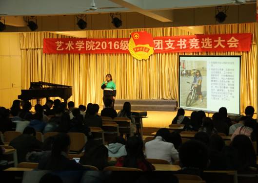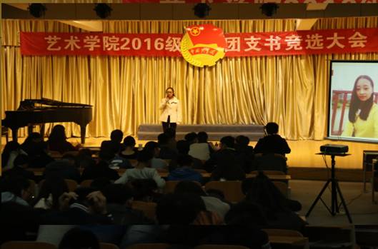 竞选期间,主持人介绍了竞选规则,来自音乐学、美术学、视觉传达设计的25位同学逐个登上舞台展示个人风采,选手结合PPT进行三分钟演讲,演讲结束后随即进行评委老师提问环节,两部分的得分之和为最后的分数,选手们的演讲内容都围绕团支部建设与班级建设的种种设想展开,并介绍了自己的个性特点、获得的成绩、荣誉,表达了为集体服务的决心。竞选期间音乐学专业的学长和2016级音乐学新生还展示了个人的专业才艺,使整个会场洋溢着欢快、和谐的氛围。