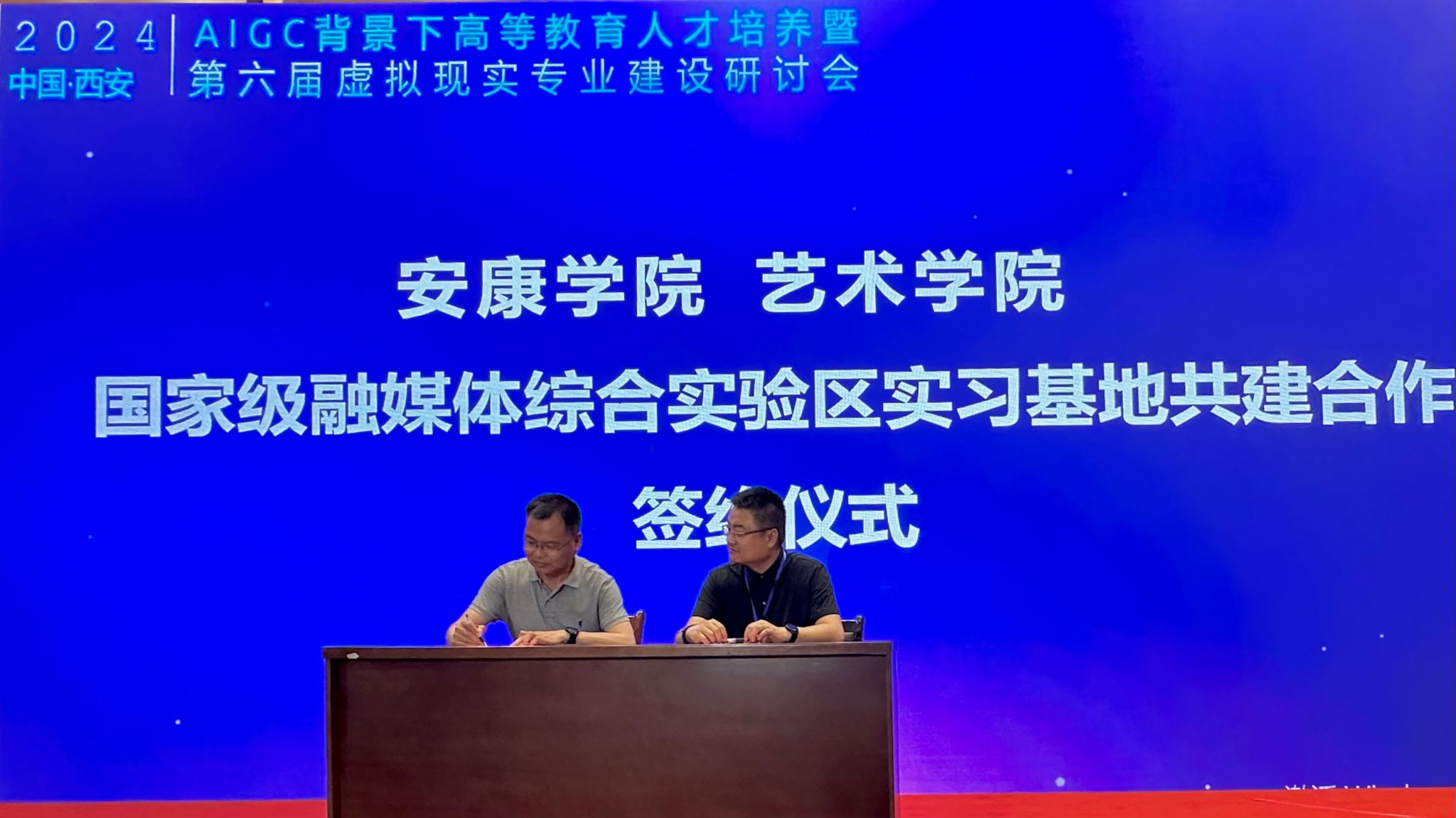 会议以“AIGC技术背景下高等教育人才培养”为主题,研讨虚拟现实技术专业课程体系、专业课程教学、实验教学及综合实践训练等相关建设工作。在会议上进行了jdb电子中国官方网站jdb电子中国官方网站国家级融媒体综合实验区实习基地合作共建协议签约仪式,成党伟代表学院签约。