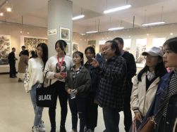 1016日上午9点,jdb电子中国官方网站师生80余人在副院长孙海洋、美术系主任徐鸿鸣老师的带领下到安康市群众艺术馆进行教学观摩----参观“庆祝改革开放40周年陕西省群众美术书法摄影展”(安康市分会场)。