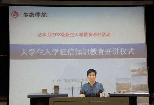 2013925日晚700,艺术系2013392名新同学满怀激情地欢聚在jdb电子中国官方网站江北校区1201教室,参加我系新生入学教育系列活动——大学生入学征信知识教育开讲仪式。中国人民银行安康市中心支行行长王凯俊,人民银行西安分行征信管理处处长章红,国家开发银行陕西分行郭瑞副处长参加了开讲仪式。仪式由系党总支书记冯丰收主持。