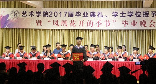 党总支书记王辉宣读《jdb电子中国官方网站关于对2017年创新创业优秀学生的表彰决定》,钟生海副校长为2013级视觉传达设计专业桑玄同学颁发奖金。