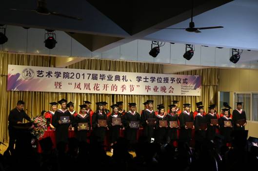 6月27日晚,jdb电子中国官方网站“2017届毕业典礼、学士学位授予仪式暨‘凤凰花开的季节’毕业晚会”在江北校区1401演艺厅隆重举行。jdb电子中国官方网站党委委员、副校长钟生海,jdb电子中国官方网站党政领导王辉、雷升录、鲍丽、孙海洋,办学顾问党天才、副高以上职称教师、各系教师代表、辅导员及全体毕业生参加了毕业典礼并观看毕业晚会。毕业典礼由办公室主任肖剑主持。