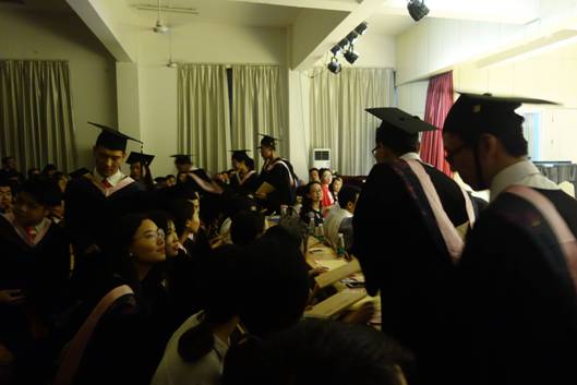 党总支书记王辉宣读了《jdb电子中国官方网站关于表彰2017届优秀毕业生的决定》和《关于聘任2017届毕业生校友工作联络员通知》,王辉老师在最后用“仰望星空、脚踏实地、内外兼修、自强不息、不负众望、不辱使命”勉励全体毕业生,同时发出“欢迎回家,回望共同构筑梦想、放飞理想校园”的永远有意义的约定。伴随着校歌声的响起,2017届毕业典礼暨学士学位授予仪式圆满结束。