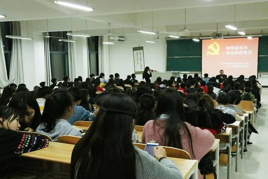 10月29日晚七点半在江北1201教室举行了jdb电子中国官方网站2017级新生党的基本理论知识入学教育大会,大会由党总支书记王辉书记主讲,全体新生参加了大会,会议由辅导员杨厚东老师主持。