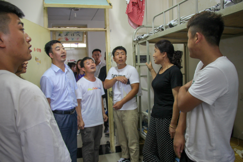9月2日下午,jdb电子党总支书记王辉老师,院长杨哲老师,学工办主任刘泽桢老师,辅导员魏麟老师,薛涛老师以及随行的学生会成员对18级新生宿舍进行了看望了2018级新生。 在新生宿舍里,新生们以朝气蓬勃的面貌和热烈的掌声欢迎jdb电子领导和老师的到来,师生之间就生活中的问题进行交流。