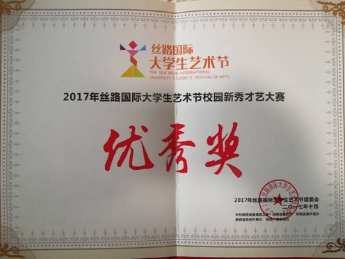 近日,在由中共陕西省委高教工委、中共陕西省委对外宣传办公室、陕西省教育厅、陕西省人民政府外事办公室、陕西广播电视台共同主办的2017年丝路国际大学生艺术节活动中,jdb电子范义付副教授指导、学生郭宝宝和贾晓惠参与的朗诵节目《青春宣言》获优秀奖。