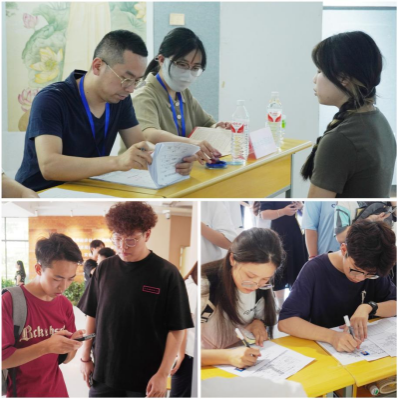 在迎新现场,学院组织学生助理、学生干部及志愿者100余人,组建迎新志愿服务队,在迎新点、校门为新生报到提供全过程、一体化的志愿服务,帮助新生登记信息、发放物资及搬运行李,帮助新生尽快熟悉校园环境和大学生活。