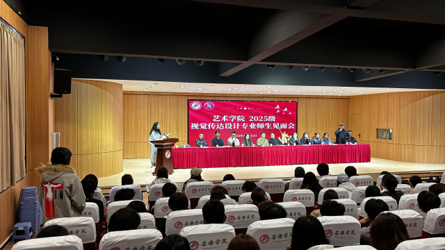 10月22日下午,jdb电子中国官方网站在1401演艺厅举办了2025级新生视觉传达设计专业师生见面会;主要目的在于搭建师生沟通桥梁、助力新生明晰专业方向。参会的有设计专业全体教师、2025级新生。活动由学工办主任邱青晓主持。