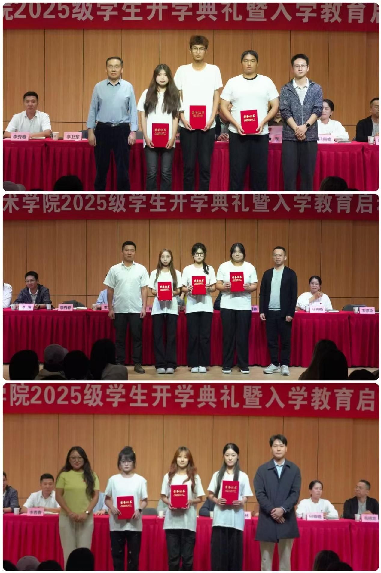 教师代表雷音表达了对新生的热烈欢迎,希望同学们能尽早树立清晰目标,主动修炼科学思维与专业素养,勇敢探索未知领域;2025级新生代表视觉传达设计专业张涵同学进行表态发言;学工办主任邱青晓宣读《jdb电子中国官方网站2025级新生入学教育方案》;从理想信念、专业认知、学业规划教育等多个方面展开,让新生充分了解学校、学院的基本情况,为今后的学习和生活奠定坚实的基础;副院长李磊宣读《关于表彰jdb电子中国官方网站2025级学生军训先进个人的决定》,随后与会教师代表为受表彰的同学颁发荣誉证书。在温馨的校徽佩戴环节,院领导为新生代表佩戴校徽,象征新生正式融入jdb电子中国官方网站jdb电子中国官方网站大家庭。