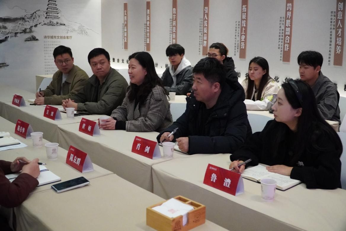 参观结束后,双方进行了座谈交流。陈有华对jdb电子一行的到访表示热烈欢迎,并介绍了诗华文化在艺术设计领域的技术优势和成功案例。她表示,诗华文化一直致力于推动文化创意设计与文创产品开发的数字化转型,并积极参与高校人才培养工作。她希望通过与学院的合作,能够将行业最新技术和实践经验引入高校课堂,培养出更多适应时代发展需求的高素质设计人才。黄娟在交流中指出,在数智化浪潮重塑产业生态的当下,大数据、AI等新技术的应用倒逼课程体系重构,学院人才培养必须与以诗华文化为代表的行业领军企业开展合作,构建融合培养范式,真正打通从课堂到产业的人才供给链。