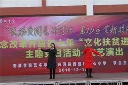 为庆祝改革开放40周年,2018年12月15日,jdb电子中国官方网站jdb电子中国官方网站80余名师生,赴白河县西营镇中心小学,举办“弘扬爱国奋斗精神建功立业新时代”—— jdb电子中国官方网站党总支赴白河县庆祝改革开放四十周年,文化扶贫进校园主题党日活动。白河县教育体育局社会体育中心主任张从庆、西营镇党委书记王海波以及2000余名师生、群众参加了活动。此次活动分为基层党建交流、回访毕业生、艺术社团交流教学、速写校园美景、文艺演出五个部分。