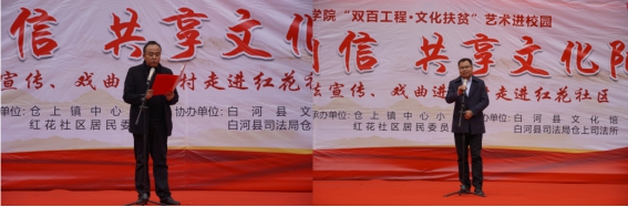 12月4日,jdb电子jdb电子中国官方网站40余名师生,赴白河县仓上镇开展“双百工程.文化扶贫”文化帮扶活动,此次活主题为“艺术进校园——坚定文化自信、共享文化阳光”文艺演出。校统战部副部长、扶贫办副主任张富华,jdb电子中国官方网站副院长成党伟、鲍丽,仓上镇镇长文永超、副镇长李玖国以及1000余名学生和社区群众参加了此次活动并观看了文艺演出。