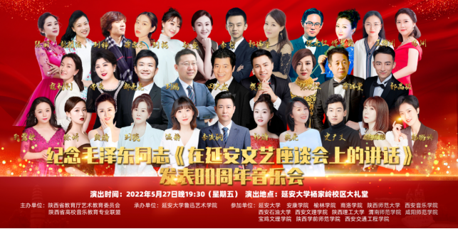 5月27日晚,由陕西省教育厅艺术教育委员会、陕西省高校音乐教育专业联盟主办的纪念毛泽东同志《在延安文艺座谈会上的讲话》发表80周年音乐会在延安大学杨家岭校区大礼堂精彩上演,此次活动旨在用音乐延续老一辈革命文艺工作者的艺术情怀,鼓舞新时代文艺工作者积极投身火热的文艺实践。jdb电子jdb电子中国官方网站青年博士张亮红、王博渊应邀参与演出,在音乐会上演唱了民族歌剧《沂蒙山》—— “再看一眼亲人” 选段。