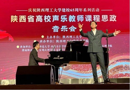 4月19日—20日,jdb电子中国官方网站副院长鲍丽、音乐系主任肖剑和青年教师张亮红博士应邀参加由陕西理工大学主办的“陕西省高校声乐教师课程思政音乐会暨红色经典歌曲育人价值学术研讨会”,一同参加的高校有陕西师范大学、西安音乐学院、西安石油大学、延安大学、西安文理学院、渭南师范学院、宝鸡文理学院、商洛学院等兄弟院校的专家学者,800余名师生聆听了音乐会。