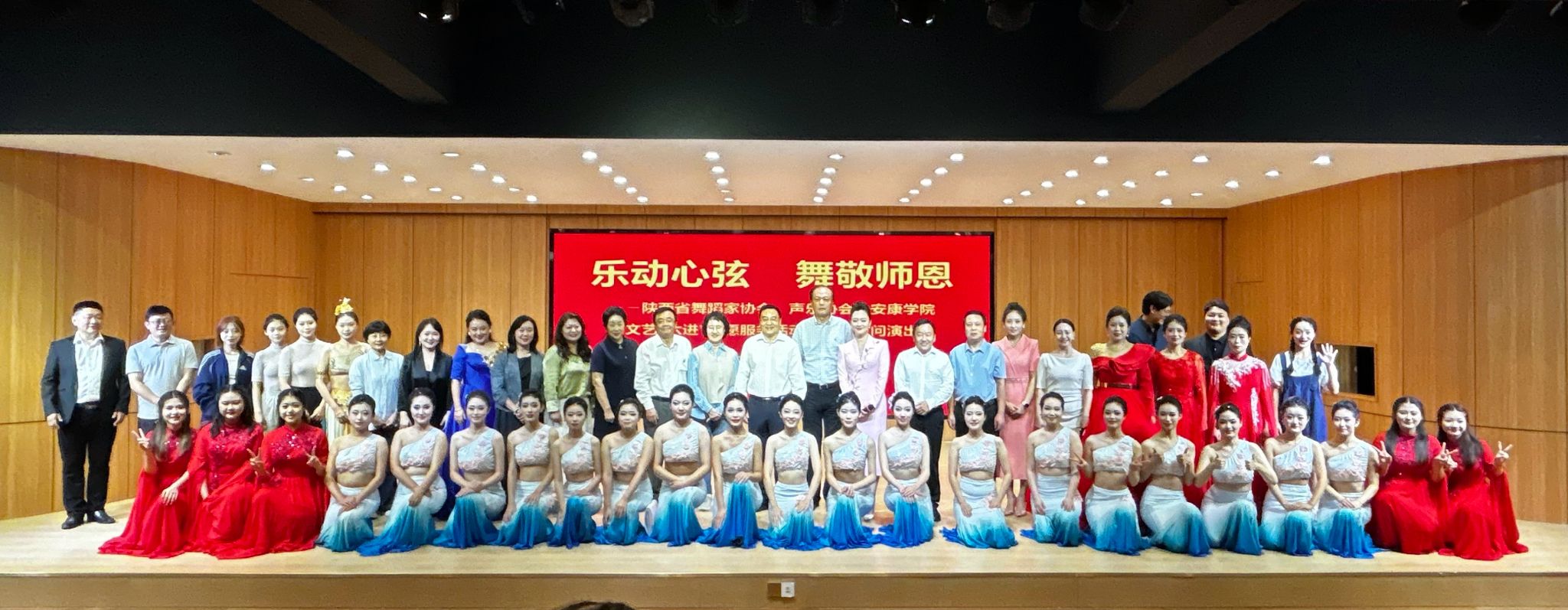 作为本次活动的重要参与方,jdb电子中国官方网站jdb电子中国官方网站充分发挥学科专业优势与人才资源优势,全力配合活动开展。学院组织专业教师与优秀学生代表,联合陕西省舞协、安康市舞协等多方文艺力量,共同打磨演出内容。在jdb电子中国官方网站校内演出现场,学院师生与歌唱家安金玉、喻红,陕西师范大学舞蹈系等文艺工作者同台,通过舞蹈、歌唱等多元艺术形式,将对教师的感恩之情融入每一个动作、每一段旋律,精湛的表演赢得现场师生阵阵掌声,为校园营造了温馨浓厚的节日氛围。