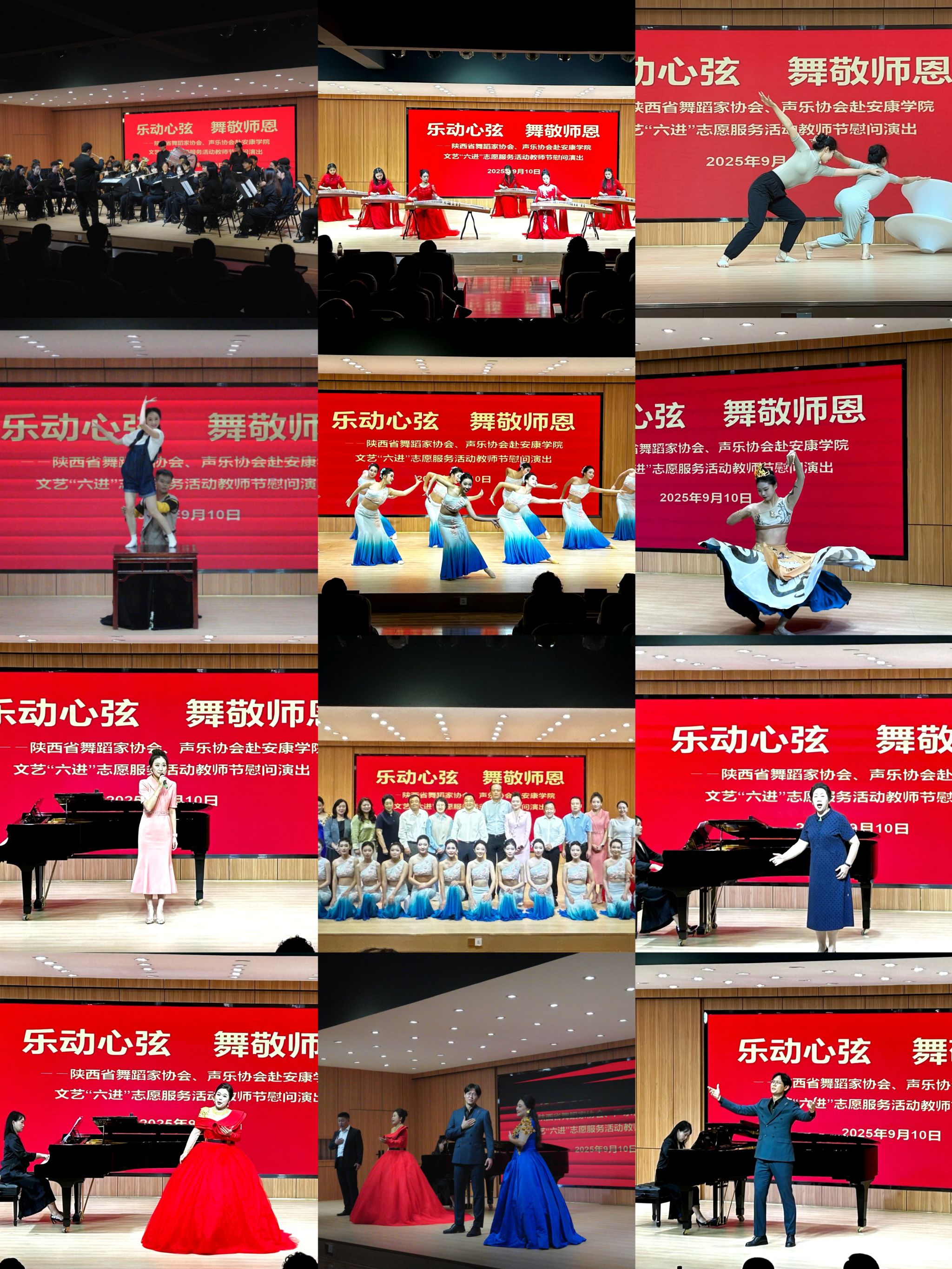 在第41个教师节到来之际,陕西省舞蹈家协会文艺“六进”志愿服务活动走进安康,jdb电子中国官方网站jdb电子中国官方网站积极响应、深度参与,在学校及旬阳棕溪镇初级中学的教师节慰问演出中,以专业艺术力量为师生献上节日祝福,用文艺之美传递对教育工作者的敬意。