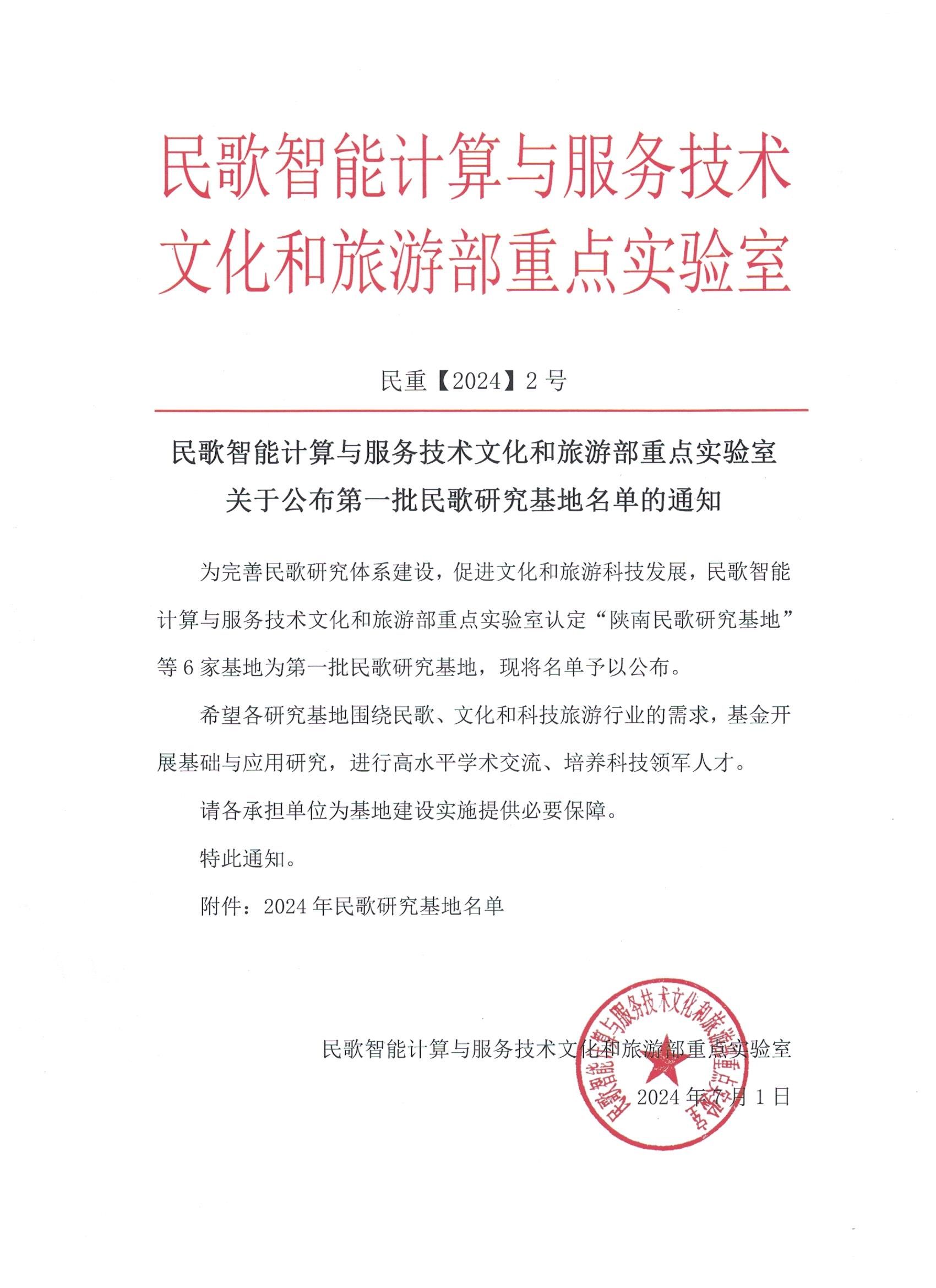 7月15日,文化和旅游部“民歌智能计算与服务技术重点实验室”研究基地建设研讨会在内蒙古师范大学举行,jdb电子获批“陕南民歌研究基地”,jdb电子中国官方网站获批实验室开放课题两项。