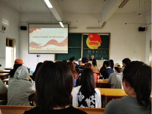 为弘扬伟大抗疫精神,厚植爱国主义情怀,jdb电子中国官方网站团总支于9月30日上午在江北2401教室组织开展“致敬先烈 继续前行 ”烈士纪念日主题团日活动,jdb电子中国官方网站党总支书记樊仁杰、团总支书记薛涛及各团支部书记参加本次主题团日活动。