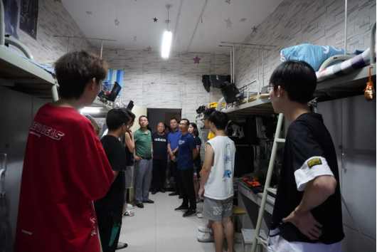 为深入了解学生返校后学习生活情况,确保学生返校后有一个安全稳定的学习生活场所。8月23日晚上7点,jdb电子中国官方网站党总支书记樊仁杰、副院长成党伟、党组织副书记李万明带领辅导员杨厚东、艾蕾、魏麟、薛涛到学生宿舍看望返校学生。
