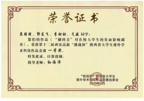 图30:jdb电子学生获得“挑战杯”陕西大学生课外学术科技作品竞赛一等奖