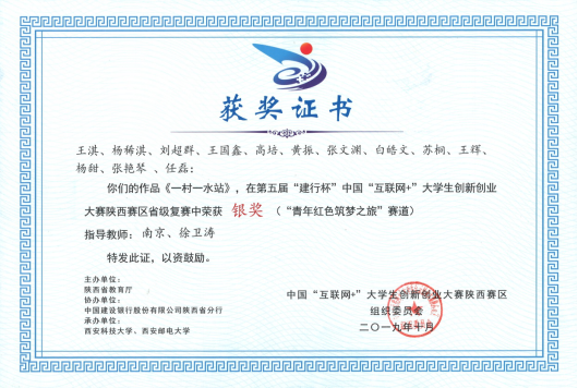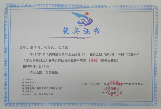 在启动会上,学校对第五届“互联网+”大学生创新创业大赛省级获奖团队与校级先进集体进行了表彰,jdb电子中国官方网站获第五届大赛“先进集体”。jdb电子中国官方网站南京老师团队项目《一村一水站》、唐钰琪老师团队项目《黄梅桃花装饰工艺品设计》分别获得陕西赛区红色筑梦之旅赛道银奖、高教主赛道铜奖。