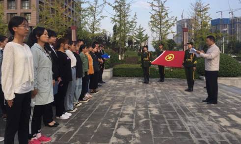 为隆重庆祝中华人民共和国成立70周年,大力唱响礼赞新中国、奋进新时代的青春主旋律,激励和引导广大团员青年弘扬以爱国主义为核心的伟大民族精神,jdb电子中国官方网站于2019年9月27日在汇知广场组织开展“我与祖国共奋进——国旗下的演讲”特别主题团日活动。jdb电子中国官方网站党总支书记樊仁杰、学生党支部书记魏麟、团总支书记薛涛以及全体团干和团员代表100余人参加了主题团日活动,活动由梁天鹏同学主持。