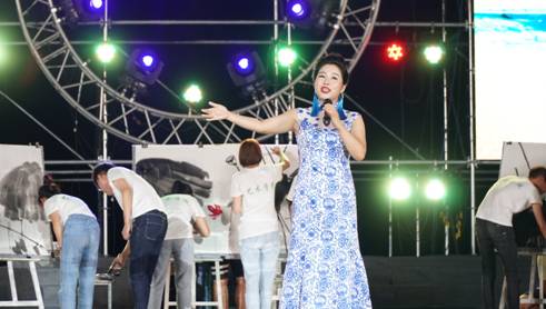 在美术、设计教学成果展示的《墨舞龙文》节目中,设计系毛绒玩具制作、环境艺术设计作品以及2019届美术专业毕业生为母校创作的书画作品,赢得了现场观众热烈的掌声。党委副书记杨行玉、副校长钟生海代表学校接收了书画作品,杨行玉老师现场以诗抒怀,表达了对19届毕业生的殷切希望、钟生海老师深情寄语,抒发了师生间浓烈的感情,校领导的真情实感将晚会推向了高潮。