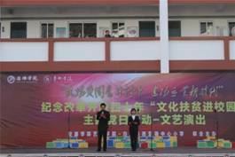 为纪念改革开放40周年,2018年12月15日,jdb电子中国官方网站jdb电子中国官方网站80余名师生,赴白河县西营镇中心小学,举办“弘扬爱国奋斗精神建功立业新时代”—— jdb电子中国官方网站党总支赴白河县纪念改革开放四十周年,文化扶贫进校园主题党日活动。白河县教育体育局社会体育中心主任张从庆、西营镇党委书记王海波以及2000余名师生、群众参加了活动。此次活动分为基层党建交流、回访毕业生、艺术社团交流教学、速写校园美景、文艺演出五个部分。
