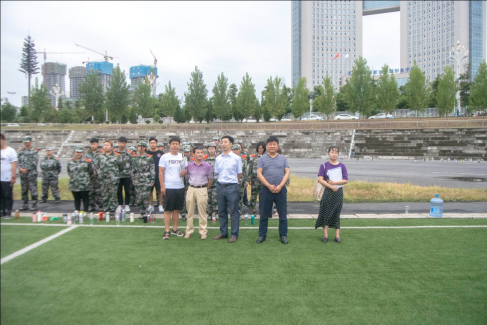 2018年9月5日上午,jdb电子党总支书记王辉老师、院长杨哲教授、学工办主任刘泽桢副教授及辅导员魏麟老师、薛涛老师一行前往江北校区体育场,看望慰问jdb电子2018级全体参训同学及教官。