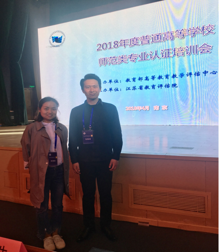 2018年4月18日,由教育部高等教育教学评估中心主办、江苏省教育评估院承办的《2018年度普通高等学校师范类专业认证培训会》于江苏省南京市召开,jdb电子音乐学专业教师雷音、文学与传媒学院教师李婷代表jdb电子中国官方网站参会。