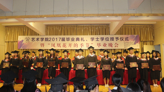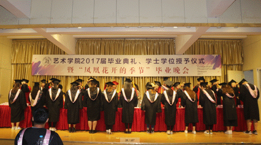 6月27日晚,jdb电子中国官方网站“2017届毕业典礼、学士学位授予仪式暨‘凤凰花开的季节’毕业晚会”在江北校区1401演艺厅隆重举行。jdb电子中国官方网站党委委员、副校长钟生海,jdb电子中国官方网站党政领导王辉、雷升录、鲍丽、孙海洋,办学顾问党天才、副高以上职称教师、各系教师代表、辅导员及全体毕业生参加了毕业典礼并观看毕业晚会。毕业典礼由办公室主任肖剑主持。