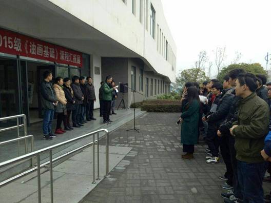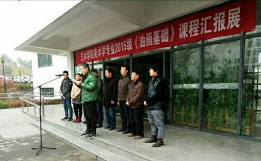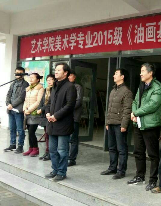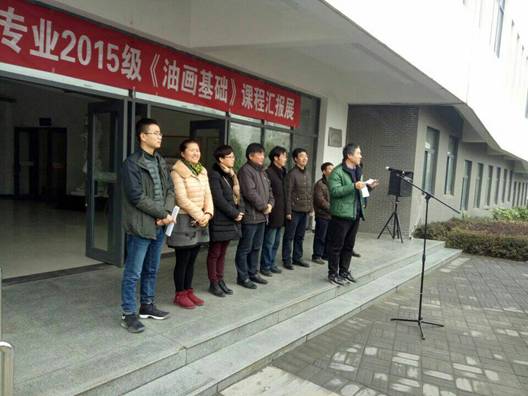 12月26日上午9点50分,在艺术楼门前举行了2015级《油画基础》课程汇报展开幕。莅临此次画展的领导老师有:jdb电子中国官方网站教务处副处长杨哲教授,jdb电子中国官方网站党总支书记王辉老师,jdb电子中国官方网站副院长雷升副教授、副院长孙海洋老师,学工办主任刘泽桢副教授,骨干教师杜敏副教授、原春鸣副教授、王胜选副教授、骆杨老师以及jdb电子15级16级美术学专业的同学们, 本次画展由副院长孙海洋主持。