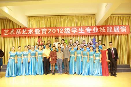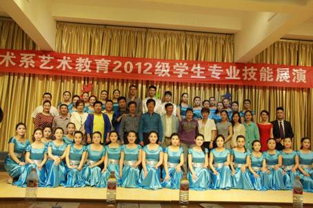 20155172000,艺术教育2012级学生艺青春专业技能展演在江北校区1401演艺厅拉开帷幕。本次展演以追忆青春、回首大学三年的时光作为初衷,由刘泽桢、田川老师作为总策划人,班团干部精心组织同学们积极参与,全班35名同学凝神聚力成功举办了这次展演活动。应邀观看展演活动的有系党总支书记冯丰收、系副主任雷升录、系办公室主任肖剑、艺术教育专业课老师等二百余名师生;同时还特邀了安康市儿童福利院领导、老师光临晚会现场。