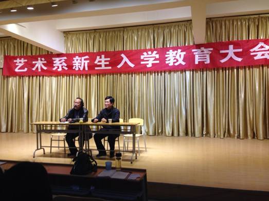 20153127:40,我系在江北校区1401演艺厅举办本学期首场新生入学教育大会。出席大会的有艺术系党总支书记冯丰收、艺术系副主任章长青和辅导员艾蕾及2014级全体学生。会议由党总支书记冯丰收主持。