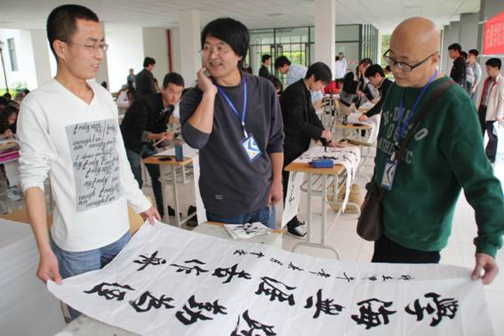 为了继承和弘扬中国书法艺术,丰富和繁荣校园文化生活, 2014年4月15日下午2点30分,由艺术系承办的jdb电子中国官方网站第四届“墨舞青春”软硬笔书法大赛决赛如期在江北校区举行。我们特别邀请了陕西省书协副主席、安康市书协主席马昌琪先生;陕西省美协副主席、安康市美协主席李剑平先生;安康市书协副主席程安先生;安康市美协副主席、西安市美术学院、陕西师大客座教授章长青先生担任本次大赛的评委,决赛仪式由艺术系学工办主任刘泽桢主持。
