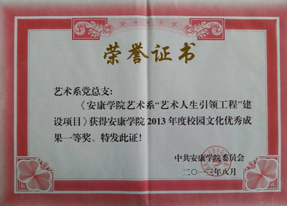 在学校8月20——21日举行的思想政治工作研讨会上,我系的《jdb电子中国官方网站艺术系“艺术人生引领工程”建设项目》获得jdb电子中国官方网站2013年度校园文化优秀成果一等奖。