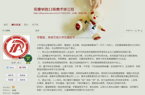 系团总支号召各班团支部全面更新班级网页,利用网络平台开展宣传、动员活动,在班级博客上发布倡议书,向广大同学宣传雷锋精神的伟大及学习雷锋精神的时代意义,倡导同学们以实际行动学习雷锋。