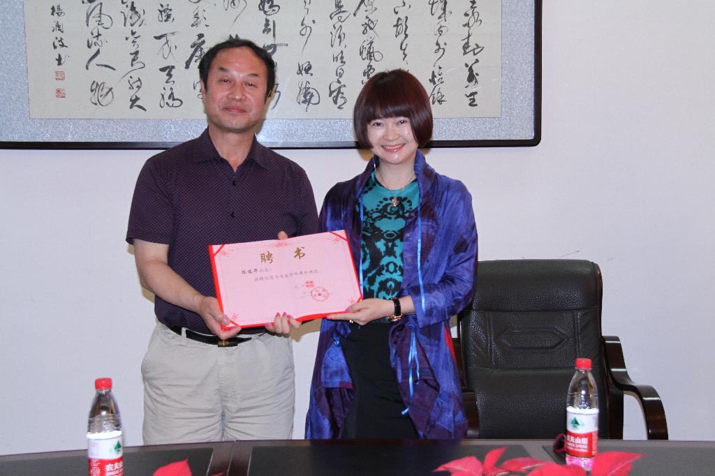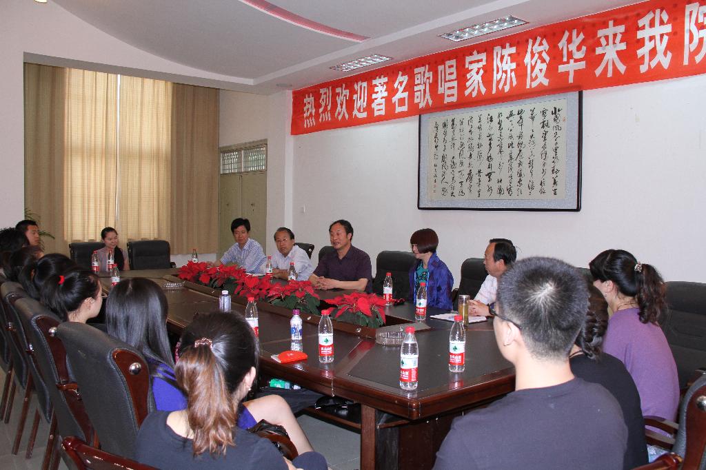 4月27日, 著名歌唱家、国家一级演员陈俊华女士到jdb电子进行交流访问并受聘为我系客座教授,受聘仪式在西校区8号楼会议室举行。院长王兴林,人事处长罗文谦,教务处长、艺术系主任单福东,艺术系党总支书记冯丰收及艺术系音乐教研室全体教师参加了受聘仪式。仪式由单福东主持,院长王兴林教授为陈俊华女士颁发了客座教授聘书。单福东代表全系师生热烈欢迎陈俊华女士的加盟,希望陈俊华女士利用其宝贵的人脉资源,把国内外更多的名家大师请到jdb电子,促进jdb电子音乐专业不断发展,提高艺术人才培养质量。随后陈俊华女士与艺术系音乐教研室教师进行了座谈交流,将自己的艺术经历与大家一起分享,并即兴演唱了汉剧作品《汉江游女》。