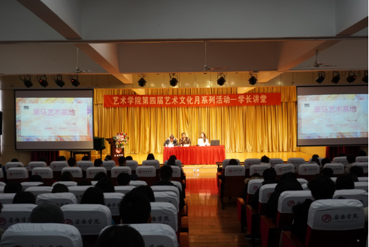 2020年11月25日下午,jdb电子中国官方网站在江北校区1401演艺厅举办了第四届艺术文化月系列活动之学长讲堂,本次活动由2013级美术学专业优秀毕业生刘蓉主讲。刘蓉现为汉中市共青团勉县委员会副书记、汉中市青年企业家协会副秘书长、黑马艺术基地勉县校区校长。本次活动由党建专职组织员刘泽桢主持,2018级辅导员魏麟及2018级学生到场分享。