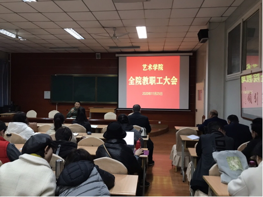 2020年11月25日下午2点30分,jdb电子中国官方网站在江南校区1018教室召开全体教职工大会和党员大会。本次大会由党总支书记樊仁杰主持,全体教职工参加。