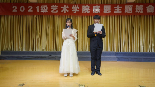 为引导广大学生树立感恩意识,激发奋进潜力,坚定人生信念,2021年11月10日下午,jdb电子中国官方网站在江北校区1401演艺厅开展了“感恩存心 温暖相伴”感恩主题班会。参加本次活动的有jdb电子中国官方网站党总支书记黄娟、院长成党伟、副书记李万明、副院长孙海洋、学工办主任鲁澧、党建专职组织员刘泽桢、学生党支部书记魏麟、团总支书记黄梓轩、辅导员杨厚东、孟莉以及2021级全体新生。本次活动由2021级音乐学王涛、王钰涵主持。