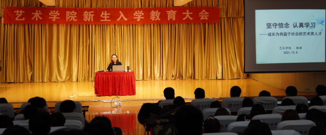 为进一步引导新生坚定理想信念,树立远大目标,提升艺术素养,12月8日晚,jdb电子中国官方网站在1401教室开展了《坚守信念 认真学习-成长为有益于社会的艺术类人才》专题讲座。讲座由jdb电子副院长鲍丽主讲,新生辅导员孟莉主持,2021级全体新生聆听了讲座。