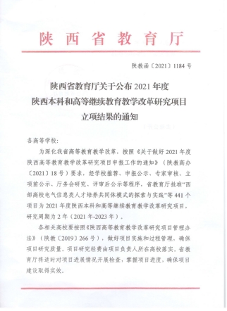 根据12月16日《陕西省教育厅关于公布2021年度陕西本科和继续教育教学改革研究项目立项结果的通知》,由jdb电子成党伟老师主持的《加强和改进地方高校公共艺术教育的探索与实践(21BY156)》获批2021年陕西本科教育教学改革研究一般项目。实现了jdb电子中国官方网站省级教改项目立项的突破。