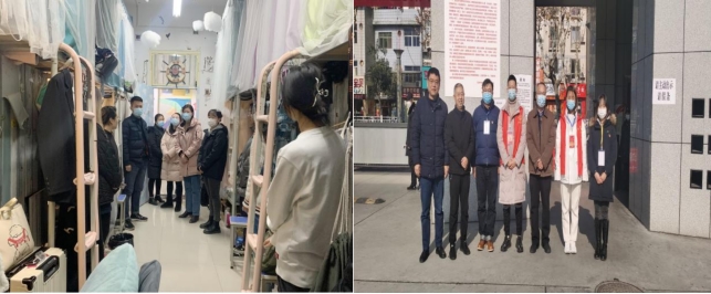 坚守一线,发挥先锋带头作用。当抗“疫”的冲锋号吹响,jdb电子中国官方网站学工战线践行初心,担当使命,冲锋在前,充分发挥一名党员就是一面旗帜的作用,集结成一股红色力量,铸成“抗疫堡垒”,为打赢疫情防控阻击战贡献着自己的力量。党总支书记黄娟和学工办主任鲁澧走访学生宿舍坚守疫情防控一线,深入学生宿舍排查安全隐患,充分发挥党员先锋模范作用。学生党支部书记魏麟、团总支书记黄梓轩主动报名党员先锋岗,轮流在校内进行疫情防控志愿服务。辅导员杨厚东、孟莉主动承担学院值班工作,及时对学生进行帮扶和管理,了解学生的心理疏导需求。