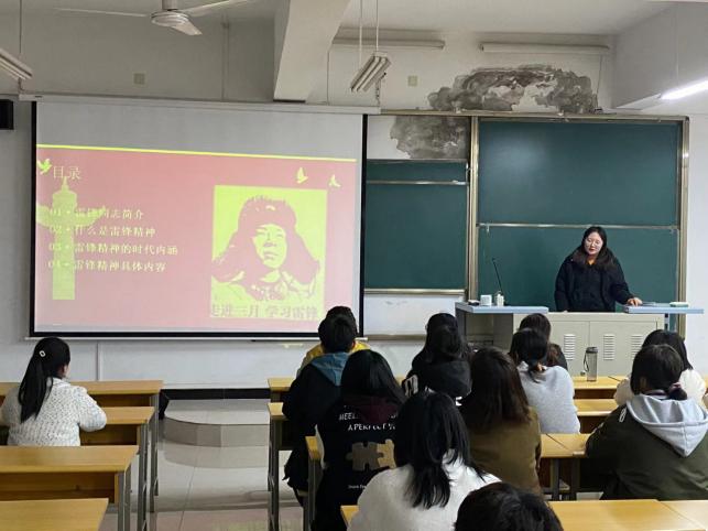 学习会在师生齐唱国歌中拉开帷幕。随后,安月阳详细介绍了雷锋同志的生平事迹、雷锋精神的时代内涵、雷锋精神的具体内容,并通过列举各个行业领域涌现的“当代活雷锋”,倡导同学们积极参加志愿活动,从点滴小事中践行雷锋精神。最后,孟莉从“讲爱心、讲学习、讲纪律、讲团结、讲奉献”五个方面强化学生对雷锋精神的理解感悟,要求学生将雷锋精神入脑入心,坚定理想信念,担当青年责任,用自己的实际行动诠释永恒的雷锋精神。